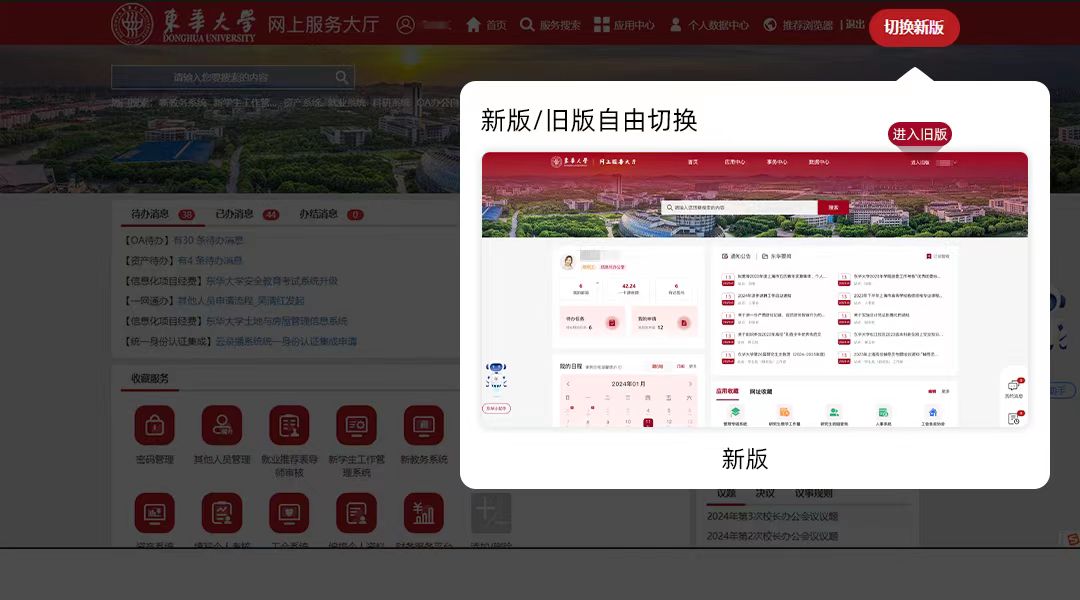 新门户将与原服务大厅并行一段时间,“切换新版”、“回到旧版”可相互切换。