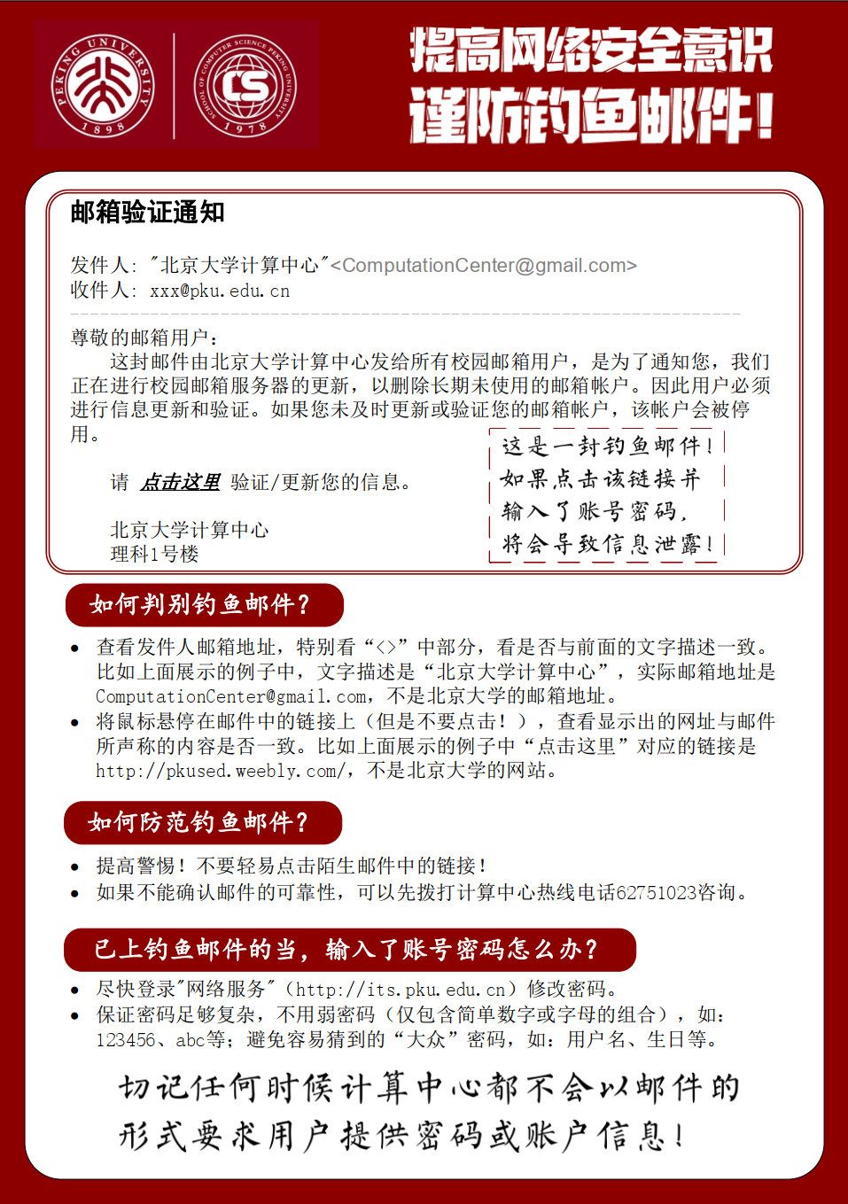 为提升师生对新型网络诈骗的识别能力,本次网安周继续策划启动了钓鱼邮件专项演练。计算中心联合心理与认知科学学院,针对新生、退休教工及在校师生等不同群体的心理特点,精心设计了多套高仿真度的演练邮件,力求真实还原攻击场景,锻炼重点人群的防范意识和应对技巧。