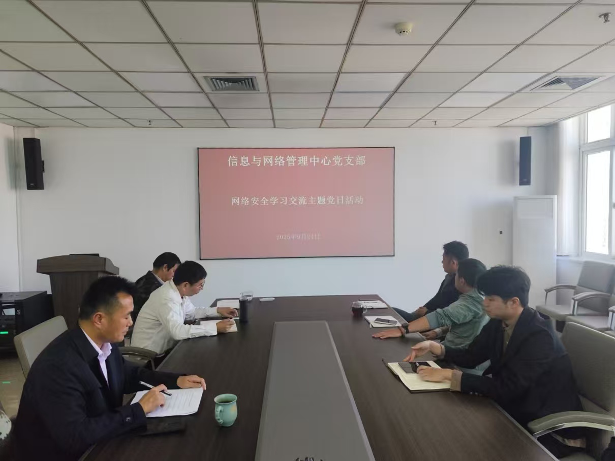 9月24日下午,信息与网络管理中心党支部在西校区图书馆八楼会议室,举办了网络安全学习交流主题党日活动,活动由中心支部书记马小雨主持,全体教职工参加。