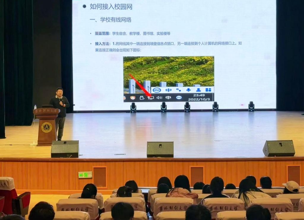 在网络安全教育环节,张健鹏主任援引《吉林财经大学数据安全管理办法》《吉林财经大学网络与信息安全管理办法》等相关条款,明确指出使用翻墙软件将面临的法律责任。系统地讲解了账号与密码安全、软件与系统安全以及防范电信网络诈骗相关知识,切实增强新生的风险识别能力。