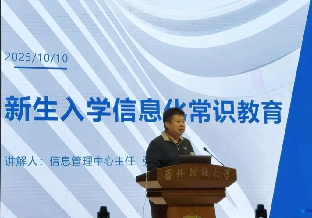 为帮助2025级新生迅速融入并适应数字化校园环境,确保高效、便捷地运用各类数字化资源和工具,提升数字校园服务体验,信息管理中心于10月10日开展新生信息化常识教育活动,中心主任张健鹏为学生现场讲解校园信息化服务使用常识与网络安全防护知识,覆盖全体新生。本次教育旨在提升新生信息素养,确保其安全、高效地运用校园信息资源,为大学生活奠定坚实基础。