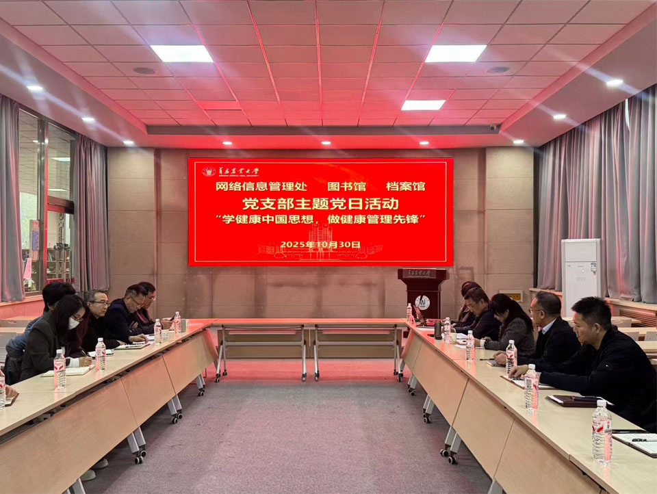 10月30日下午,网络信息管理处党支部、图书馆党支部、档案馆党支部联合开展“学健康中国思想,做健康管理先锋”主题党日活动。活动由图书馆副馆长姜仁珍主持,全体党员参加活动。