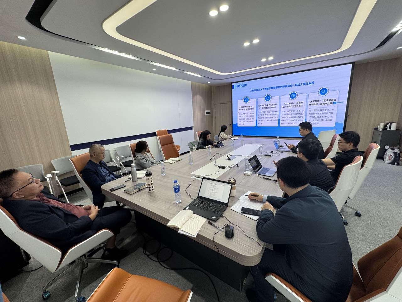 1 0 月3 1 日下午,学院党委委员、副院长钟用在A 109 会议室主持召开第二轮研讨会议,现代教育与信息技术中心负责人及业务骨干参会。中联教育集团专家结合第一轮座谈交流情况,重点从技术布局角度进行了题为《AI驱动的智慧校园信息化建设》的报告,报告内容包括:AI驱动的智能系统整体概述、基于AI原生系统平台的五大先进特征、架构与核心平台协同、全员参与的治理体系等。钟用表示,此次交流研讨为我校“十五五”教育信息化发展进一步理清思路,也对我校未来AI人工智能大模型建设和AI智能应用具有很深的参考借鉴意义,希望会后能够进一步强化沟通交流,结合学校信息化发展现状提出更为符合学校发展实际的思路。
