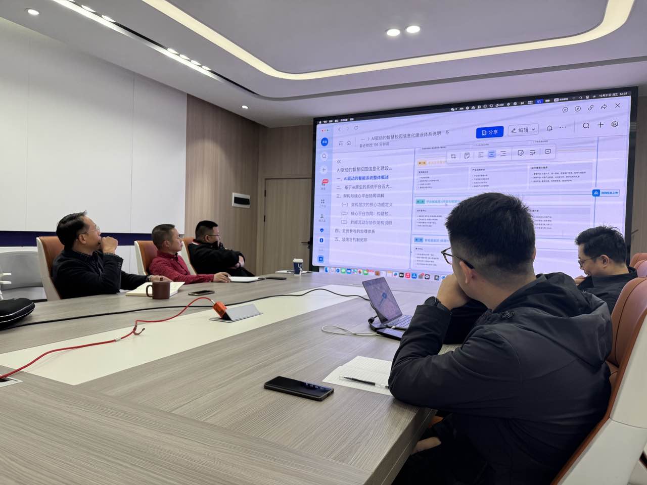 1 0 月2 0 日下午,现代教育与信息技术中心组织人事处、教务处、会计学院、财税学院、信息学院等负责人及业务骨干,在A 109 会议室与中联教育集团专家进行了第一轮座谈。座谈会上,中联教育集团对我校“十五五”教育信息化发展规划和人工智能大模型建设方案进行了点评,专家表示我校编制的规划和方案基本符合当前高校信息化建设发展趋势,总体架构较为合理。同时,专家重点从高校信息化建设总体框架和AI场景在高校的深层应用向参会人员进行了讲解,初步为我校“十五五”教育信息化发展规划进行了问诊把脉。
