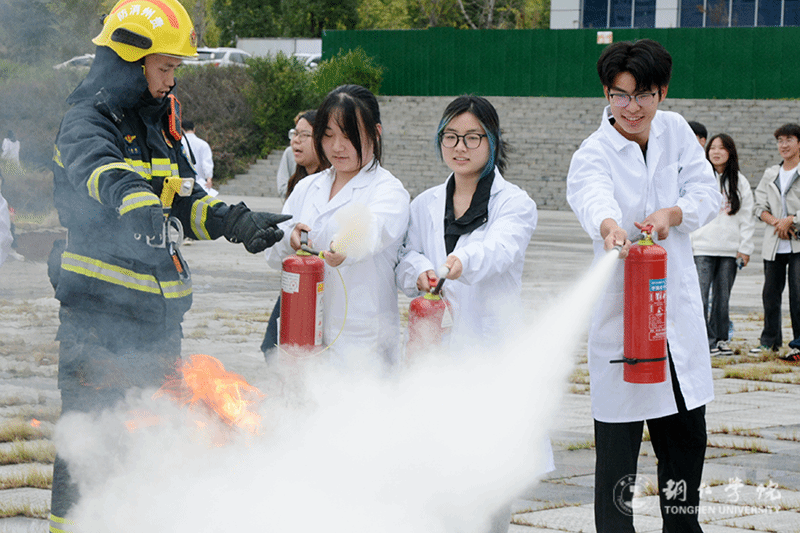 学生体验灭火操作