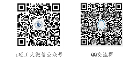 欢迎各位老师关注 “i轻工大”微信公众号,并加入QQ交流群(群号:801846418),获取更多信息化教学相关信息。信息化管理中心工作人员和平台技术支持工程师将为您提供在线技术支持服务。