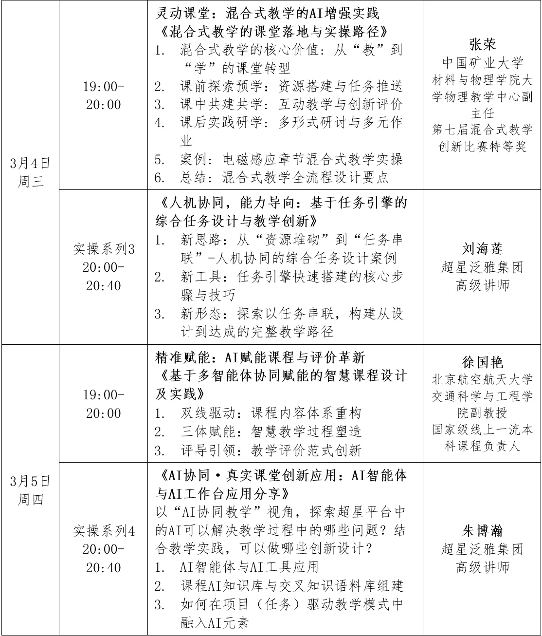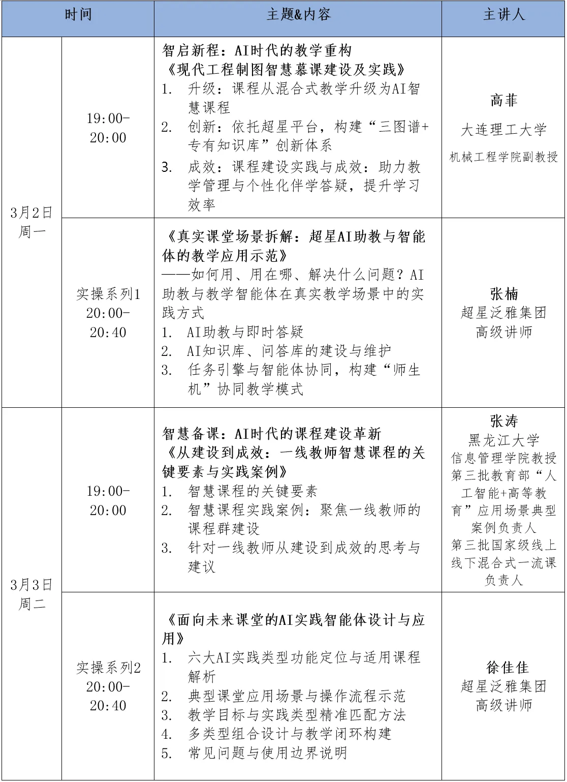 2026年3月2日-3月6日(周一至周五)连续5天,每晚19:00-20:40。